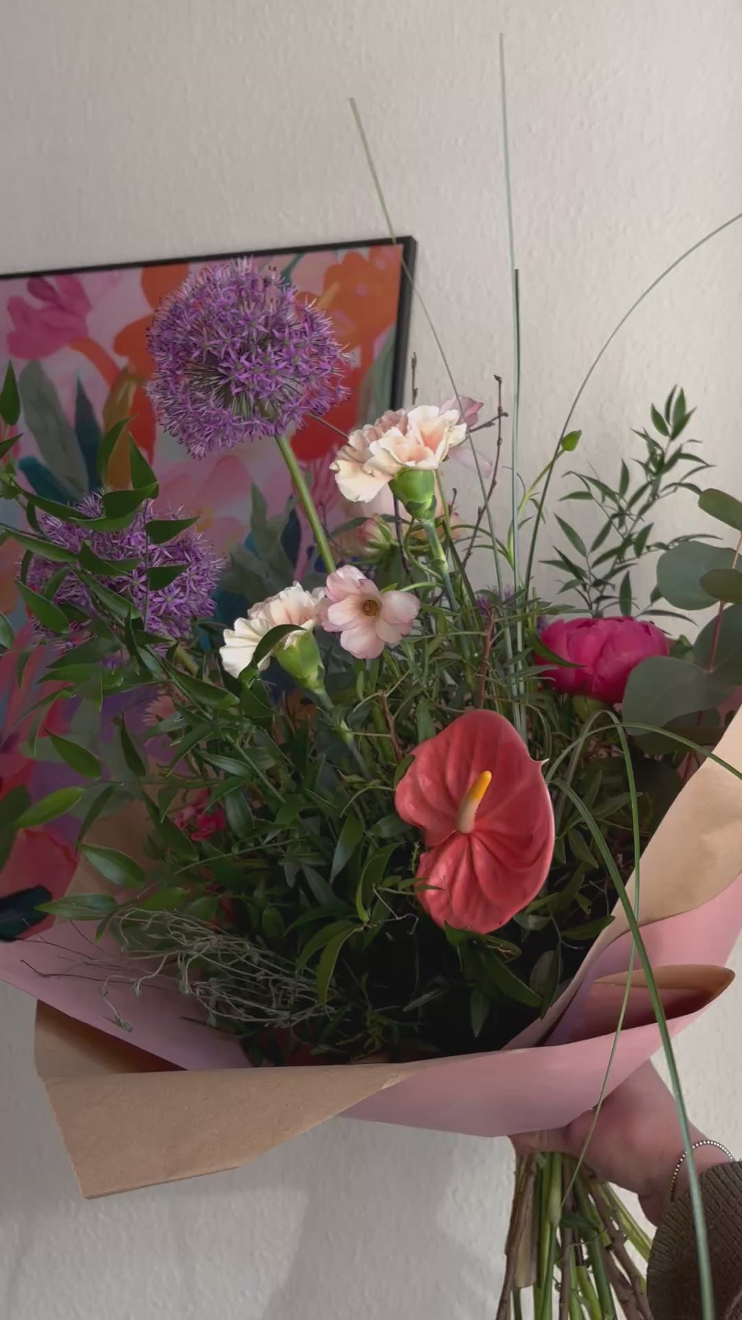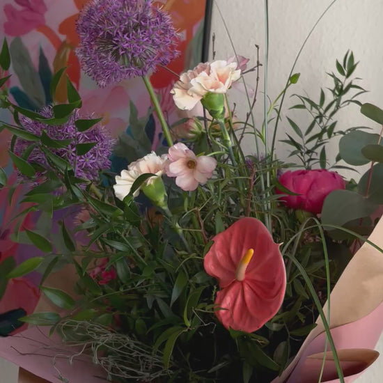 - Mit Allium, Anthurie, Nelke und anderen Blüten der Saison
